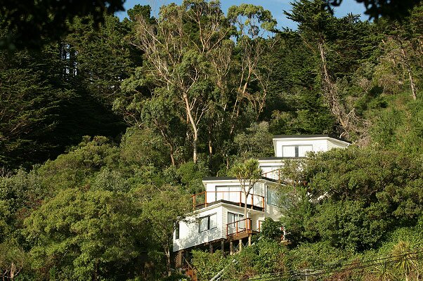 General Modern architecturally designed retreat 2 storey with spectacular sea-views Sleeps five (two in each of the two bedrooms, and one on a roll-away bed in livingroom, if required) Open plan living/dining area Wide sea views Area 90m2 plus decks/patios Cable-car access On-street parking 20 minutes from city centre Check in: 3:00 pm. Check out: 12:00 noon. No pets Non-smoking inside